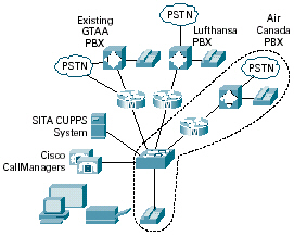 Median Option 81c PBX來取代他們已有的Centrex服務(wù)。這個PBX為整個機(jī)場提供了超過2500條線路,其中包括所有關(guān)鍵任務(wù)型區(qū)域,例如現(xiàn)有的控制塔和所有機(jī)場登機(jī)柜臺。讓形勢更加不利的是,該PBX已經(jīng)銷售完畢,正在由一家本地電話公司負(fù)責(zé)管理。該公司是思科在數(shù)據(jù)方面的合作伙伴。它拒絕與思科合作安放IP電話。另外一個關(guān)鍵的考慮因素是該機(jī)場最主要的航空公司租戶——加拿大航空——也是Nortel