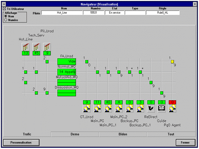 A4400 CCS 呼叫中心監(jiān)管系統(tǒng)是A4400 CCD 的完美配套設(shè)備。此監(jiān)管系統(tǒng)組件提供最新實(shí)時(shí)監(jiān)控功能。經(jīng)理和主管不僅能很好協(xié)調(diào)呼叫處理過(guò)程,而且也能觀察服務(wù)水準(zhǔn)、話務(wù)量情況等,并能在現(xiàn)場(chǎng)采取相應(yīng)的措施。