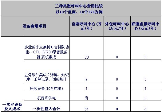 注1:自建和外包呼叫中心按目前市場平均價計算。虛擬呼叫中心按聯(lián)通標(biāo)準(zhǔn)資費計算。外包坐席按裸坐席計算。