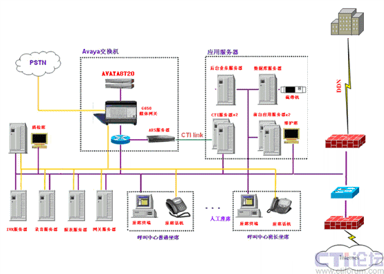 95190呼叫中心項(xiàng)目采用國際知名品牌AVAYA交換機(jī)作為系統(tǒng)接入處理,提供了包括數(shù)據(jù)庫服務(wù)器、文件服務(wù)器、CTI/IVR服務(wù)器、中間件服務(wù)器等相關(guān)后臺(tái)強(qiáng)有力的支撐服務(wù)設(shè)備,提供了三層網(wǎng)絡(luò)交換機(jī)、硬件防火墻等網(wǎng)絡(luò)設(shè)備等。整個(gè)系統(tǒng)達(dá)到960路中繼接入、180路人工座席、20路IP座席、360路IVR、15路傳真;支持7號(hào)信令、ISDN信令等信令協(xié)議;提供人工座席的實(shí)時(shí)同步錄音。