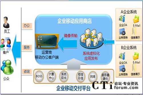 如果在政府或企業(yè)在內(nèi)網(wǎng)部署“移動應(yīng)用交付平臺”,即可充分利用現(xiàn)有運(yùn)營商網(wǎng)絡(luò)渠道服務(wù)的能力,從而實現(xiàn)政府或企業(yè)的“移動辦公”要求。