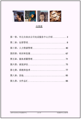 e) 電話服務(wù)中心人員的培訓(xùn)和發(fā)展;建立標(biāo)準(zhǔn)的培訓(xùn)機制,包括部門文化,專業(yè)知識,服務(wù)技巧,電腦知識,確?蛻舴⻊(wù)代表在上崗前具備足能的技能,同時在客戶服務(wù)代表上線以后,進行一對一的指導(dǎo),確保服務(wù)質(zhì)量的穩(wěn)定;同時從從服務(wù)隊伍中選出骨干進行培訓(xùn)員的培訓(xùn),讓他們擔(dān)任日常的培訓(xùn)工作。另外,還建立了持續(xù)改進計劃,確保客戶服務(wù)代表的培訓(xùn)效果能夠持續(xù)的改進。