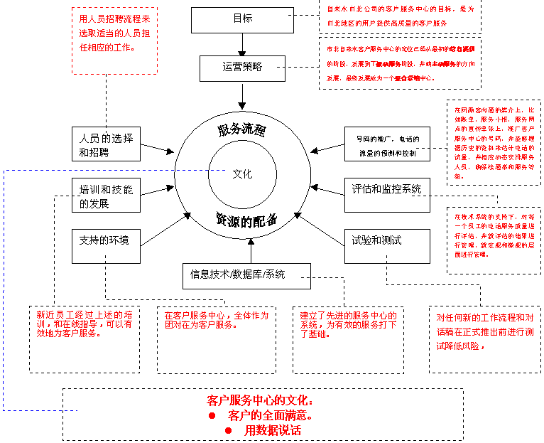 1. 呼叫中心管理文化的建立。通過員工的培訓(xùn),會議和其他內(nèi)部溝通的渠道,推廣數(shù)字化管理的文化。在呼叫中心內(nèi),所有的管理指標(biāo)都將由數(shù)字進行支撐。沒有模糊的類似于"今天的電話很忙"的描述,所有的溝通將會是:"今天的來電數(shù)為358個,應(yīng)答數(shù)為279個,平均通話時間2分25秒種,話后工作時間34秒,服務(wù)等級為85/30。等等。