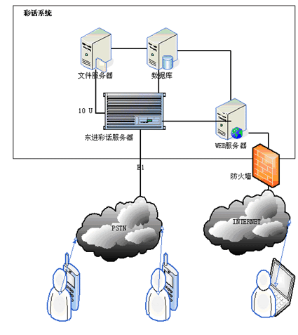 用戶在撥打電話時可撥打本系統(tǒng)特服號xxxxx+被叫電話號碼,系統(tǒng)將接通其指定的被叫電話號碼,同時加入背景音樂功能,用戶在系統(tǒng)接通被叫號碼后,在與被叫方進行通話的過程中,就可以使用事先設定的背景了。