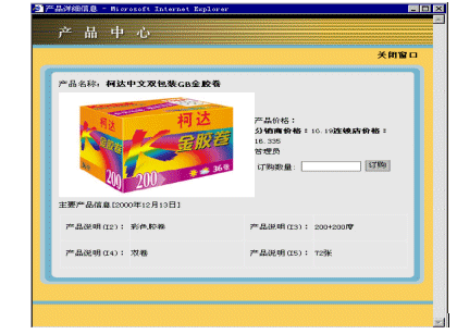 在用戶選擇一個分類時,此分類下的產品將會被列出。用戶可以直接在想要購買的產品后填寫購買數量,一次可以填寫多個產品。這樣在處理產品訂購的時候,大大的提高了效率。同樣,用戶也可以點擊詳細信息鏈接查看產品的詳細信息(參看圖2)。