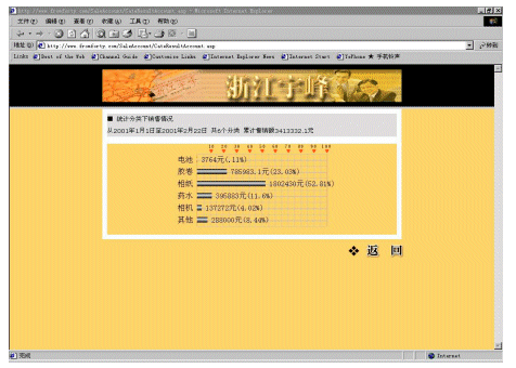 宇峰公司(www.fromforty.com)是柯達(中國)有限公司在中國華東地區(qū)的總代理,負責管理華東地區(qū)近600個分銷商和連鎖店。公司非常重視信息化建設,添設了大量的計算機,建立起初步的管理系統(tǒng)。但是直到2000年還是依靠E-mail傳遞大量的Excel表格獲取需要的產品銷售和庫存的信息。這些表格對各級分銷商查詢和統(tǒng)計數據來說非常麻煩,因為每周要處理幾百個訂購單。整個處理過程非常緩慢,并且成本很高,也容易造成各種的數據錯誤。而公司內部對業(yè)務人員銷售情況的統(tǒng)計,也頗為麻煩,因為下級分銷商上報上來的數據準確性差,并且不夠及時。處理這些表格對宇峰公司和分銷商以及連鎖店而言都是效率很低的,并且常常令人茫然不知所措。
