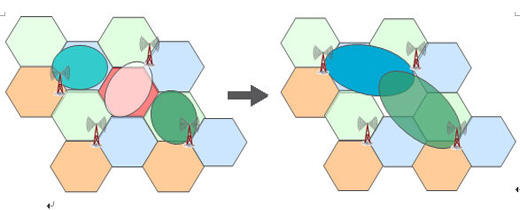 一旦出現(xiàn)退服,OSS會協(xié)調(diào)問題基站周邊基站的扇區(qū)來補(bǔ)償退服的無線覆蓋。如下圖,參與補(bǔ)償?shù)幕緯{(diào)整下行發(fā)射功率、天線傾角等來補(bǔ)償退服區(qū)域,甚至調(diào)低上行信號接收門限變相地擴(kuò)大該扇區(qū)覆蓋以接入更多退服區(qū)域的終端。當(dāng)然,由于扇區(qū)的調(diào)整,會造成鄰區(qū)關(guān)系變化、切換邊界變化、干擾增加,這些就需要OSS提供的其他功能ANR、MRO、ICIC來聯(lián)合優(yōu)化。