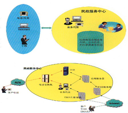 民政社區(qū)服務(wù)中心利用CTI技術(shù)、網(wǎng)絡(luò)技術(shù)、數(shù)據(jù)庫技術(shù)、WEB技術(shù)及多種接入方式:電話、呼叫器、傳真、互聯(lián)網(wǎng)、移動互聯(lián)網(wǎng)、手機等,為廣大居民提供便捷、優(yōu)質(zhì)的社區(qū)服務(wù)。
