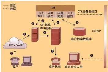 CTI (Computer Telephony Integration 計(jì)算機(jī)電信集成) 技術(shù)將計(jì)算機(jī)網(wǎng)和電話網(wǎng)連接在一起,把語音和數(shù)據(jù)服務(wù)集成為一體,使得構(gòu)造數(shù)據(jù)和語音的融合應(yīng)用得以實(shí)現(xiàn)。例如,由于CTI技術(shù)的引入,當(dāng)用戶來話時,呼叫中心能根據(jù)用戶的呼叫信息如ANI(主叫號)結(jié)合數(shù)據(jù)庫迅速地識別用戶,實(shí)現(xiàn)“彈屏”功能;當(dāng)電話轉(zhuǎn)接時,實(shí)現(xiàn)語音數(shù)據(jù)的同步轉(zhuǎn)移;根據(jù)所獲得的客戶信息及其他相關(guān)信息將來話路由到最適合服務(wù)的座席等。CTI技術(shù)包含了數(shù)據(jù)通信與語音通信兩大部分的內(nèi)容,關(guān)注的不僅僅是將基于計(jì)算機(jī)的智能技術(shù)運(yùn)用到電話的發(fā)送、接收及管理,還要考慮各種媒體類型的信息傳送,包括實(shí)時信號和非實(shí)時信號,如傳真、電子郵件和視頻信號等。