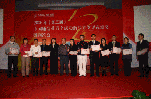 經(jīng)過長達6個月的方案征集、遴選和最后打分綜合評選,"2005(第三屆)中國通信業(yè)百個成功解決方案評選"活動結(jié)果終于在2005年度最后一周揭曉,成為獻給我國通信行業(yè)發(fā)展的第一份新年禮物。
