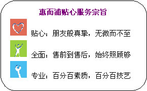 惠而浦在中國推出了“貼心服務(wù),服務(wù)到家”的宗旨。