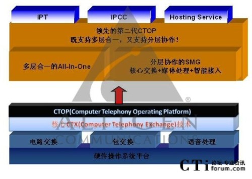  通過CTOP平臺為多種不同的應(yīng)用提供系統(tǒng)平臺,包括IP PBX、IP呼叫中心以及Hosting Service,且核心功能無需外掛其他服務(wù)器。同時也提供了非常強大與其他應(yīng)用的集成能力,拓展了核心平臺的應(yīng)用范圍。