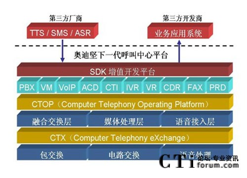傳統(tǒng)型的語音交換機(jī)在設(shè)計之初,只側(cè)重于語音交換能力,并沒有考慮到呼 叫中心這種需要集成數(shù)據(jù)的應(yīng)用模式,因此基于傳統(tǒng) TDM 交換機(jī)的呼叫中心系 統(tǒng)都需要外掛 CTI 服務(wù)器,至于基于語音板卡、傳統(tǒng)型 IP-PBX 或軟交換的呼叫 中心系統(tǒng)也不例外。而奧迪堅 IP 呼叫中心平臺在設(shè)計伊始,就專門針對于呼叫 中心的應(yīng)用,在底層已經(jīng)將 PBX、CTI、IVR 等核心功能緊密地融合在一起了, 在系統(tǒng)集成度方面遠(yuǎn)遠(yuǎn)優(yōu)于傳統(tǒng) TDM 交換機(jī)、語音板卡、傳統(tǒng)型 IP-PBX 或軟 交換的解決方案。