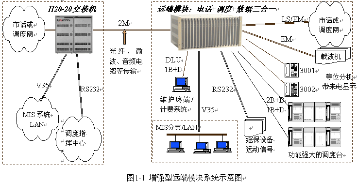 • 為 H20-20 交換機(jī)提供 話音、調(diào)度及數(shù)據(jù) 的三合一綜合接入;