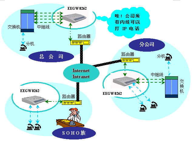 EEGW 8262 FXS根據(jù)國際電信組織ITU-T的H.323協(xié)議,提供語音及傳真在網(wǎng)際網(wǎng)絡(luò)上的服務(wù),只需一個(gè)IP地址及兩部電話機(jī)〈傳真機(jī)〉,即可享受VoIP的好處;適合住家型,SOHO族,及中小企業(yè)使用。