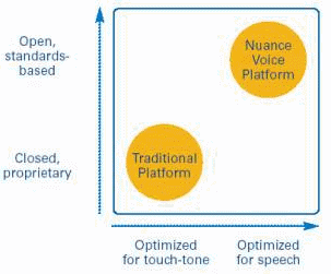 傳統(tǒng)的平臺是基于封閉的、非統(tǒng)一標(biāo)準(zhǔn)的技術(shù)并為按鍵式輸入應(yīng)用而設(shè)計的,而Nuance NVP平臺是開放的、基于統(tǒng)一標(biāo)準(zhǔn)的語音平臺產(chǎn)品,它能夠支持客戶公司已有的IT投資和基礎(chǔ)設(shè)備,同時可以加入語音的應(yīng)用,提高了信息傳遞的自動化程度和客戶的滿意度。