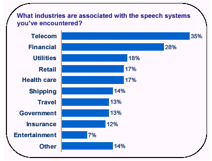 其中被最頻繁使用的功能是通過電話向其客戶提供客戶服務,或讓客戶了解其個人的戶口狀況。其他被經常使用的語音服務還包括電話查號功能,個人電話本,航班信息查詢,以及自動付賬功能應用等。