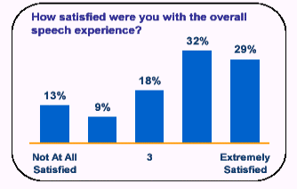 此外,十個人中九個人認為他們從使用語音服務中得到了在鍵盤式服務中得不到的價值不菲的好處,并有70%的人說如果語音服務系統(tǒng)取代了按鍵式系統(tǒng)的話,他們的效率也將得以提高。