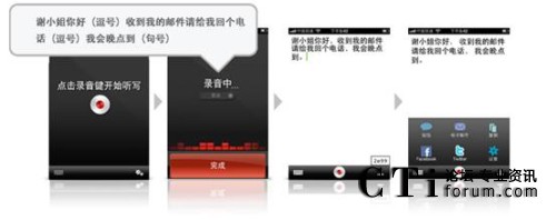 聲龍(Dragon)系列應用軟件是基于Nuance著名的Dragon NaturallySpeaking® 語音軟件開發(fā)的應用,借助語音識別技術(shù),用戶在輕松自然說話時,就可將語音即時轉(zhuǎn)換成要發(fā)送的短信文本或電子郵件,更新社交網(wǎng)絡(luò)狀態(tài)和進行網(wǎng)絡(luò)搜索。事實證明,語音識別的速度比使用鍵盤輸入文字快上五倍以上。