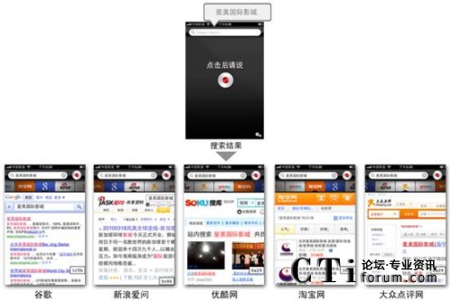 適用于iPhone™、iPad™和iPod touch™的聲龍搜索(Dragon Search)同時也在蘋果 App Store推出,為用戶提供強大的語音搜索功能;谠摦a(chǎn)品,用戶只需說出自己的搜索要求,便可通過移動網(wǎng)絡(luò)找到相應的信息和答案。 另外,聲龍搜索(Dragon Search)創(chuàng)新的搜索功能界面(Dragon Search Carousel)還可以支持用戶同時訪問包括谷歌、新浪愛問、優(yōu)酷網(wǎng)、淘寶網(wǎng)和大眾點評網(wǎng)等多個熱門網(wǎng)站和搜索引擎,并在幾秒鐘內(nèi)獲得來自多個內(nèi)容來源的搜索結(jié)果。