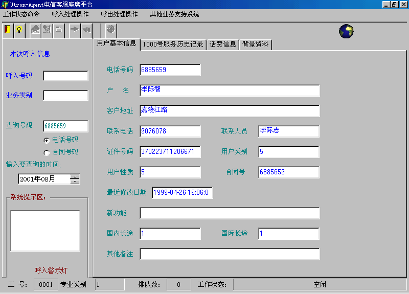 。。座席應(yīng)答時,在當前座席座席端上顯示系統(tǒng)分配的客戶隊列和在線的客戶信息。同時,通過客戶管理功能,還可以對系統(tǒng)存儲的客戶信息進行維護和管理。