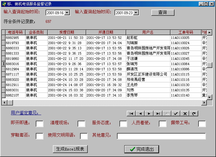 裝、移機服務(wù)監(jiān)督回訪實例: