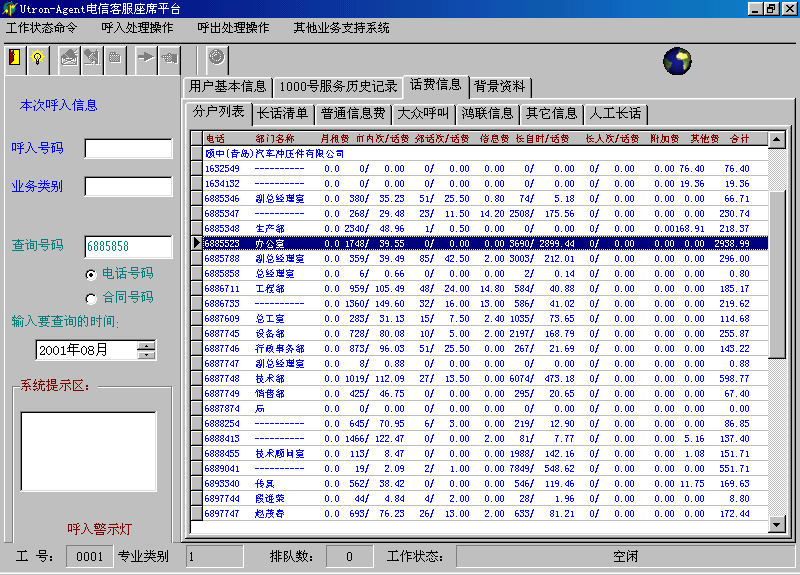 。。Utron-CC2000呼叫中心系統(tǒng)以其強大和靈活便捷的功能,優(yōu)良的性能價格比,能夠滿足日益發(fā)展的電信企業(yè)客戶服務(wù)的多方面要求,是為電信用戶提供高效率、全方位的周到服務(wù),開展增值業(yè)務(wù)強有力的工具。