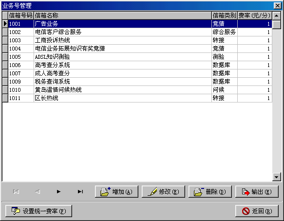 。。方便電信企業(yè)開展諸如類160/168業(yè)務(wù)、呼叫中心外包、有償信息服務(wù)、課題調(diào)查/客戶委托調(diào)查、電信公告/客戶委托公告、語音/傳真信箱、電話秘書臺、商家廣告等增值業(yè)務(wù)服務(wù)。