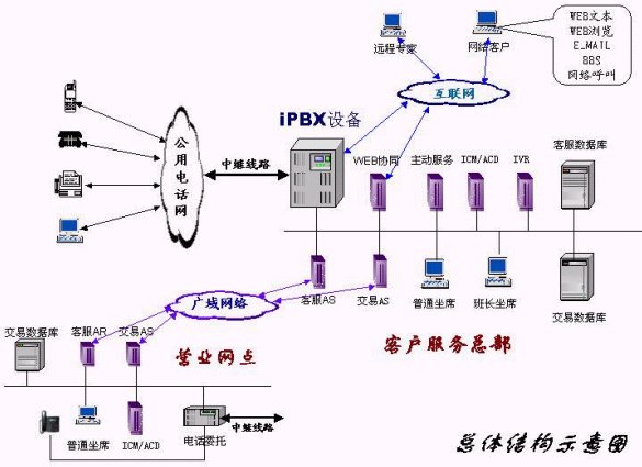 IVR)才能完成的諸如語音處理、按鍵識別、傳真收發(fā)等媒體處理能力。iPBX同時提供來自傳統(tǒng)TDM網(wǎng)絡和來自新的IP網(wǎng)絡的話務接入能力。