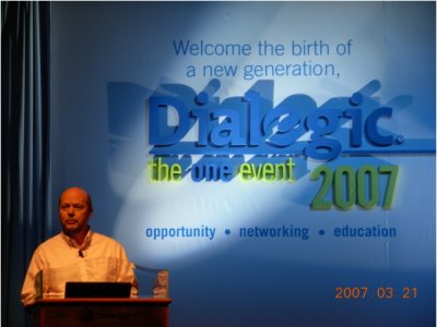 大會首先由Dialogic公司的全球資深副總裁 James Besley致辭。“我們回來了!”,James一句意味深長的開場白引來了全場長時間的熱烈鼓掌。是的,曾幾何時,Dialogic在全球CTI領(lǐng)域是何等的輝煌,上個世紀(jì)九十年代他們?nèi)〉眠^驕人的業(yè)績,占據(jù)了全球市場的絕大部分份額,稱之為當(dāng)時CTI行業(yè)的先驅(qū)和領(lǐng)導(dǎo)者實(shí)不為過。