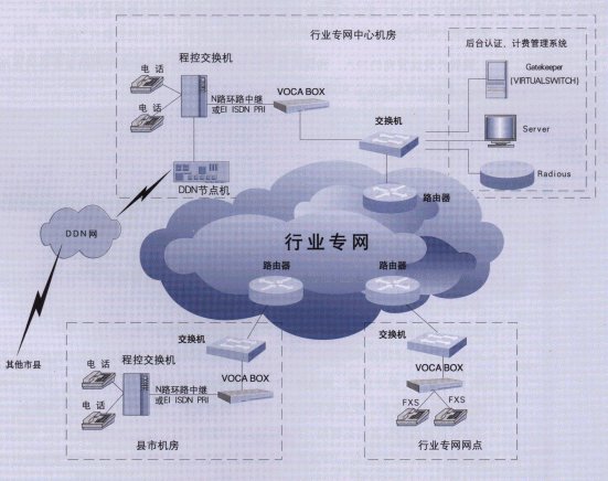中心并設立一級計費認證及結算中心、網(wǎng)絡管理中心(VBMS),對網(wǎng)內電話集中管理和計費。通過在各地市機構原有的內部網(wǎng)絡基礎上增加數(shù)臺VOCABOX實現(xiàn)語音終端接入,并在地市機構通過帶FXO接口的VOCABOX實現(xiàn)內部IP電話與內部電話網(wǎng)絡的呼叫轉接,網(wǎng)絡拓撲連接如下圖所示