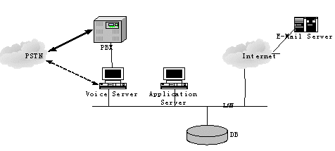 注: 本系統(tǒng)結構靈活, TTS, Application Server 和語音識別引擎可以根據系統(tǒng)的大小分別分布在幾臺服務器上, 或者集中在一臺服務器上.