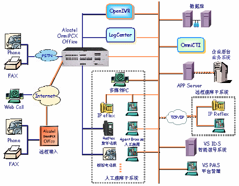 OmniCTI:負責計算機和通信子系統(tǒng)之間的通信功能,提供ACD排隊和技能座席功能。