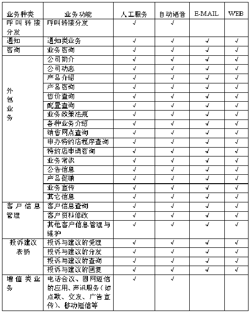 F、通知類業(yè)務(wù):對某些特定的對象通過自動呼出或人工呼出進(jìn)行通知,實(shí)現(xiàn)政策法規(guī)、專題的通知,方式可以是電話、傳真、eMail、短消息、網(wǎng)站等;