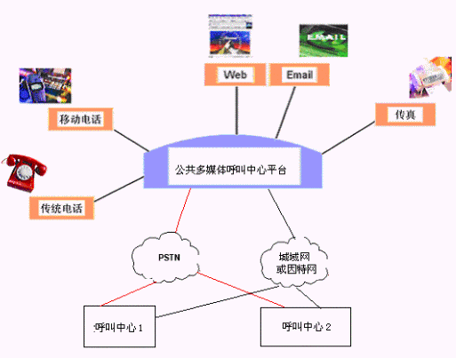 客戶利用電話、傳真、電子郵件、因特網(wǎng)、手機(jī)、短消息等進(jìn)入城市公共多媒體呼叫中心平臺,本系統(tǒng)依托現(xiàn)有各專業(yè)呼叫中心/使用城市公共多媒體呼叫中心平臺租賃服務(wù)的企事業(yè)單位的各類業(yè)務(wù)技術(shù)支持系統(tǒng)和網(wǎng)絡(luò)系統(tǒng),通過人工受理或自動語音服務(wù)等方式全天24小時(shí)不間斷地為客戶提供各種服務(wù)。