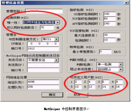 由上圖我們可以看出,NetSniper可以方便地根據(jù)用戶IP地址或MAC地址控制同一網(wǎng)口用戶數(shù)量,用戶數(shù)量控制可以分八級(jí),包括單一用戶和無限用戶的缺省設(shè)置,一共十級(jí)。用戶數(shù)量按照按自己的意愿定義每一級(jí)用戶可以管理計(jì)算機(jī)的數(shù)量,準(zhǔn)確,靈活,是運(yùn)營商增加接入服務(wù)方式的強(qiáng)大基礎(chǔ)。