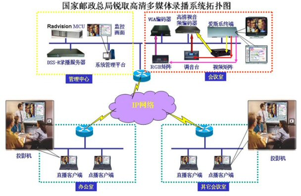 國(guó)家郵政總局為國(guó)家政府機(jī)構(gòu),主要負(fù)責(zé)郵政業(yè)的發(fā)展戰(zhàn)略、發(fā)展規(guī)劃和有關(guān)政策等諸多職責(zé)。由于機(jī)構(gòu)的特殊性,一些政策、法規(guī)、信息傳播、突發(fā)事件等日常工做必須及時(shí)、準(zhǔn)時(shí)、快速、準(zhǔn)確來(lái)完成,所以建設(shè)了視頻會(huì)議系統(tǒng)。與此同時(shí),為了能夠更好、更準(zhǔn)確、更及時(shí)、更完整的把會(huì)議內(nèi)容所包括的相關(guān)信息及時(shí)傳播與記錄,也增加了可視化信息的傳播與記錄系統(tǒng):深圳銳取多媒體錄播系統(tǒng)。