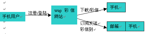 用戶通過手機注冊我們的另一項服務--"無限郵"業(yè)務,可以得到我們?yōu)榭蛻魷蕚涞氖謾C郵箱系統(tǒng),通過這個系統(tǒng)用戶能夠?qū)崿F(xiàn)用手機終端完成郵件的收發(fā)功能,更重要的是用戶可以以這套系統(tǒng)為中介實現(xiàn)多媒體信息的從網(wǎng)站的下載和對手機終端的發(fā)送。
