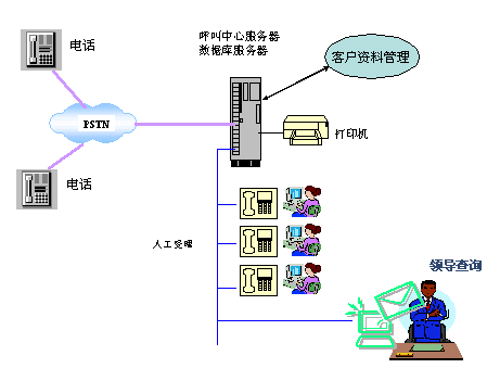 本系統(tǒng)將由2大部分組成:服務(wù)熱線受理呼叫中心(CALL CENTER),客戶資料信息管理(CRM)