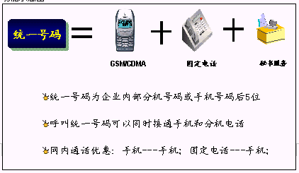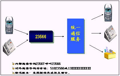 鐵路內(nèi)部員工可以統(tǒng)一所有的通信工具,只使用一個(gè)號碼,一次呼叫便可以完成通信,使通信更加簡單、可靠。可以實(shí)現(xiàn)換機(jī)換網(wǎng)不換號,用戶獲得一個(gè)終身的聯(lián)系號碼,用戶無論更換任何通信工具,聯(lián)系號碼和方式不會改變。例如:在路局領(lǐng)導(dǎo)找下屬的時(shí)候,只需要撥打他的統(tǒng)一號碼,便可以直接找到他。不必考慮他是否在外出還是在辦公室,是否更換了手機(jī)號碼。統(tǒng)一號碼就像他員工號碼,始終不變,即撥即通!