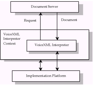 文檔服務(wù)器(Document Server)主要是響應(yīng)客戶應(yīng)用程序的請求,相當(dāng)于一個(gè)Web服務(wù)器,它返回VoiceXML文檔給VoiceXML環(huán)境,并交由VoiceXML解釋器進(jìn)行解析,處理。VoiceXML解釋環(huán)境(VoiceXML Interpreter Context)相當(dāng)于一個(gè)瀏覽器,它內(nèi)置了VoiceXML解釋器。