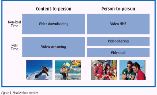 許多移動運營商已經(jīng)引領(lǐng)并推出移動視頻服務(wù),它正因視頻流和實時P-to-P高質(zhì)量通話的增加,逐步發(fā)展出更多的商機。ARC組織估計,在2004年里,全世界的移動視頻用戶數(shù)量將增至2400萬,而到2008年,將是10倍的增長,達到2億4700萬。(摘自:ARC組織發(fā)表的《2003年-2008年,世界移動視頻市場分析和戰(zhàn)略前景》)今天,大約有60個運營商是依據(jù)發(fā)布新聞和其它公共信息資源來推廣移動視頻服務(wù),圖1展示了移動視頻服務(wù)的概念框架。