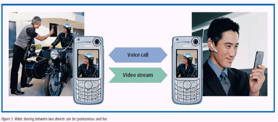在最近一次諾基亞委托進行的IP多媒體研究中顯示,消費者喜歡增加了視頻共享的視頻電話,有趣的手機外觀被看作是非常重要的,而視頻共享也被認為是非常有用的,被看作是基于視頻短信的MMS的一個明顯的進步。消費者喜歡去共享的時刻是:例如在假期里,購物、舉家外出旅行,或者是一個周末的夜晚。通過視頻共享來展現(xiàn)你的位置及同行人員,可以確保人身的安全。同樣,視頻共享技術(shù)也可以應(yīng)用于商業(yè)領(lǐng)域,如財產(chǎn)狀態(tài)監(jiān)視和遠程檢查野外工作等。