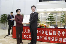 在頒證儀式上,信息產(chǎn)業(yè)部信息中心副主任、中國(guó)信息化推進(jìn)聯(lián)盟秘書長(zhǎng)劉獻(xiàn)軍,中國(guó)信息化推進(jìn)聯(lián)盟客戶關(guān)系管理專業(yè)委員會(huì)常務(wù)副主任、《全國(guó)呼叫中心標(biāo)準(zhǔn)體系》制定與評(píng)審小組組長(zhǎng)郭晨東分別向中國(guó)人壽總部及三地分公司頒發(fā)了CCCS認(rèn)證證書。