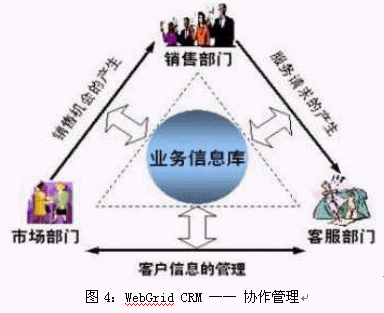 企業(yè)的銷售、服務(wù)和市場業(yè)務(wù)有一個(gè)共同的特點(diǎn),就是都與客戶打交道,都是以"客戶為中心"開展業(yè)務(wù)的。面對共同的客戶,需要共享相同的客戶信息。與此同時(shí),各部門的業(yè)務(wù)也不是孤立的,而是在互動(dòng)的過程中相互促進(jìn),共同提升。WebGrid CRM系統(tǒng)根據(jù)CRM理念而設(shè)計(jì),將銷售、市場和服務(wù)業(yè)務(wù)進(jìn)行整合,提供了統(tǒng)一的操作平臺(tái),實(shí)現(xiàn)了業(yè)務(wù)信息的共享。此外,WebGrid CRM制定了靈活的工作流程,實(shí)現(xiàn)了各個(gè)業(yè)務(wù)部門之間的信息交互:由市場活動(dòng)可以生成銷售機(jī)會(huì);服務(wù)過程中的銷售意向也可以通過反饋提交到銷售部門中去……WebGrid CRM的這一功能消除了市場、銷售和服務(wù)各部門之間的信息孤島,將三個(gè)部門緊密結(jié)合,形成一個(gè)有機(jī)的整體,從而提升了企業(yè)整體的運(yùn)營效率。