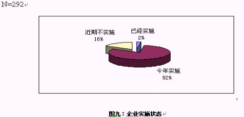 對大多數(shù)企業(yè)來說,對CRM還處于關(guān)注階段,只有7家企業(yè)表示已經(jīng)開始實(shí)施,在電話訪問中,了解到這7家企業(yè)的實(shí)施的主要是在渠道管理和客戶呼叫中心等方面,但表示今年會(huì)開始實(shí)施的卻超過8成。