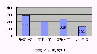 3) 提升企業(yè)形象:很多受訪企業(yè)特別是服務(wù)業(yè),已經(jīng)建立客戶忠誠度放在了很重要的位置,但比較其它幾個(gè)直接動(dòng)因,比例偏低,這也說明"以客戶為中心"的觀念還沒有"以利潤為中心"強(qiáng)烈。