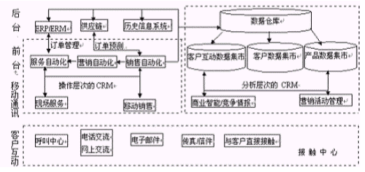 在企業(yè)中對于客戶關(guān)系資源管理方面可歸納為兩個(gè)方面的問題。其一,企業(yè)的銷售、營銷和客戶服務(wù)部門難以獲得所需的客戶互動(dòng)信息。其次,來自銷售、客戶服務(wù)、市場、制造、庫存等部門的信息分散在企業(yè)內(nèi),這些零散的信息使得無法對客戶有全面的了解,各部門難以在統(tǒng)一的信息的基礎(chǔ)上面對客戶。這需要各部門對面向客戶的各項(xiàng)信息和活動(dòng)進(jìn)行集成,組建一個(gè)以客戶為中心的企業(yè),實(shí)現(xiàn)對面向客戶的活動(dòng)的全面管理。