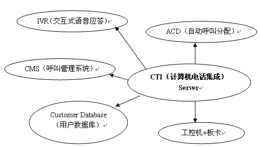 以CTI(計(jì)算機(jī)電話集成)為核心模塊,實(shí)現(xiàn)對(duì)IVR(交互式語音應(yīng)答)、ACD(自動(dòng)呼叫分配)、CMS(呼叫管理系統(tǒng))、板卡+工控機(jī)、Customer Database(用戶數(shù)據(jù)庫(kù))的統(tǒng)一管理。呼叫管理系統(tǒng)功能實(shí)現(xiàn)——