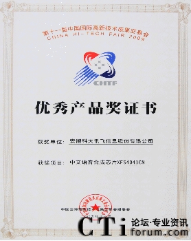 科大訊飛獲評“中國手機(jī)創(chuàng)新軟件金品獎(jiǎng)十佳” 2009-11-19